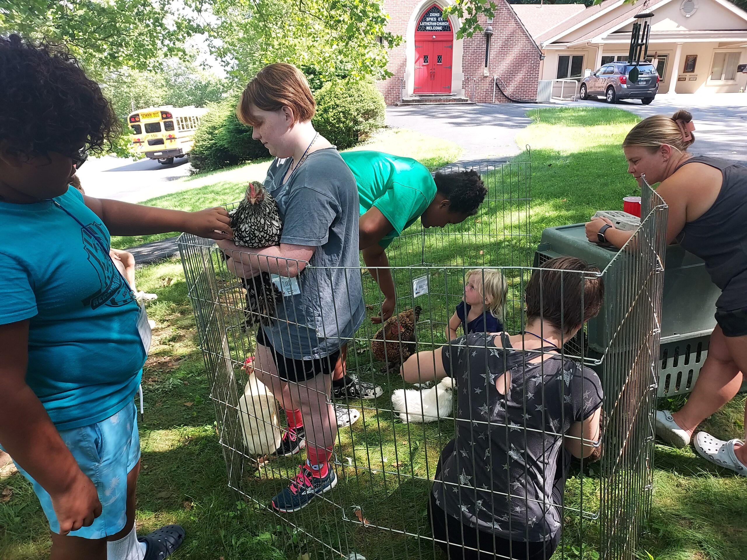 Campers in need of extra love and care in their own homes, provided love and care to visiting chickens, goats and therapy dogs. Magic, the Emotional Support dog added the whole camp to his duties with his partner… affirming the saying that d-o-g is G-o-d’s reflection of unconditional love.