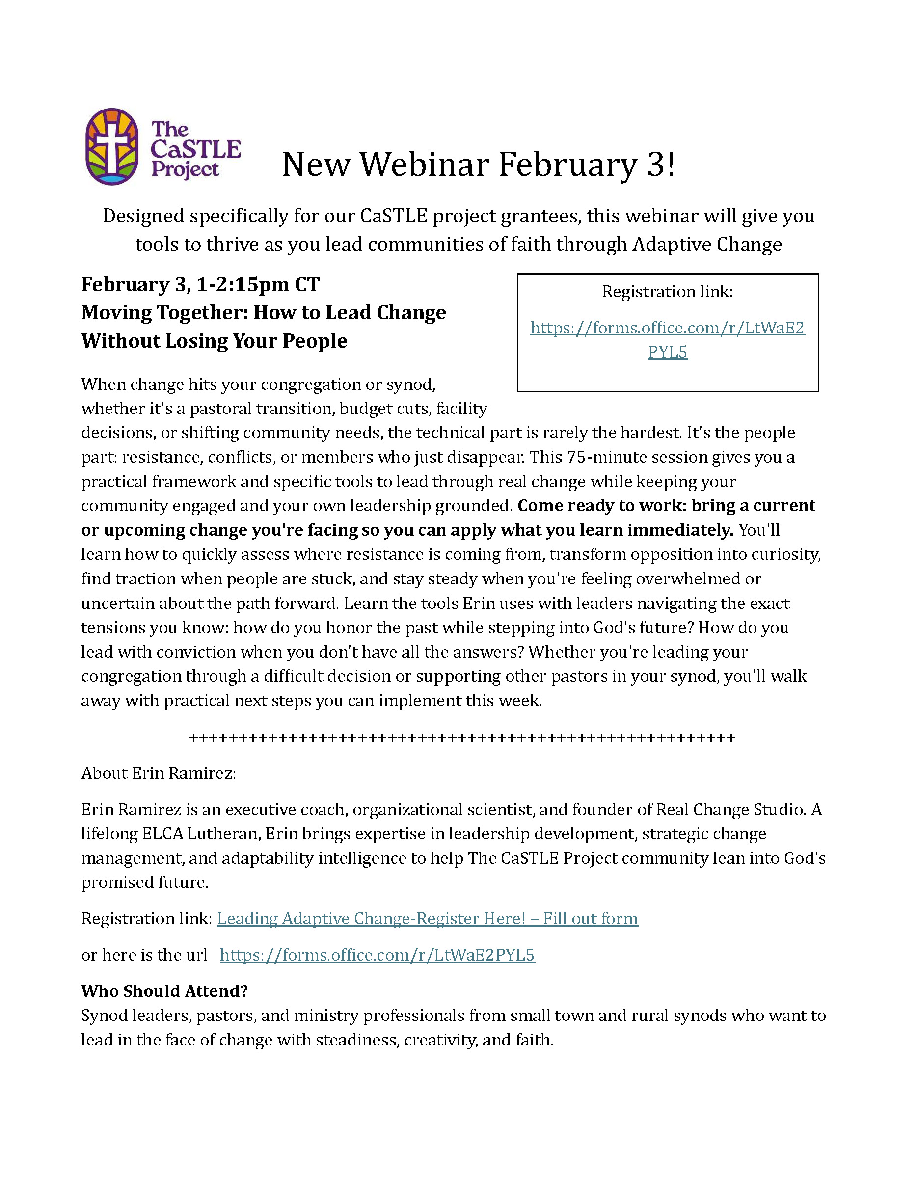 NEW OFFICE AND EDUCATIONAL ITEMS AVAILABLE (1/12) - St. Paul Lutheran Church in Reading has office and educational items. Anyone interested can contact John Brewster, who can either meet them at St. Paul’s or arrange for someone from St. Paul’s to meet them. vicarjohn@aelc.org